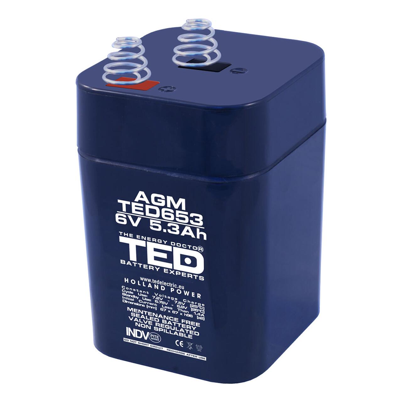 TED TED002952 - Acumulator cu plumb acid 6V 5.1AH, 5.3AH, terminal cu arcuri, TED653 TD4R25