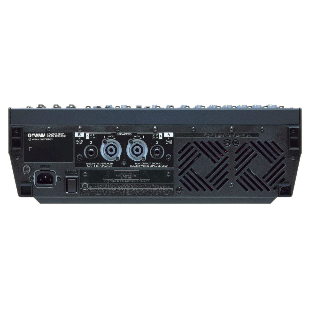 Yamaha EMX5016CF-mixer amplificat cu 16 canale (8 mono + 4 stereo), procesor de efecte dual SPX, filtru hi-pass pe fiecare canal si EQ pe 9 benzi si include doua amplificatoare de 500W.