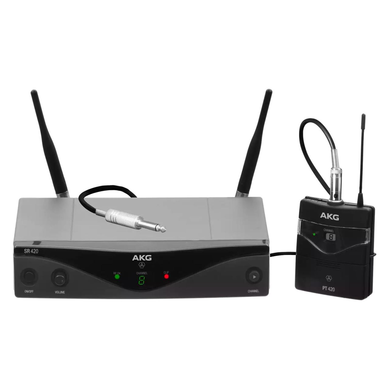 Sistemul fara fir AKG WMS420 Instrumental Set este un sistem profesional de instrument wireless cu mai multe canale, cu transmisie de ton pilot pentru a preveni zgomotul nedorit. Setul instrumental include un transmițător de corp PT420 într-o carcasă compactă și robustă, care oferă o calitate audio supremă pentru chitare și basuri electronice solicitante, pentru instrumente amplificate, viori electronice, microfoane de lavaliera sau de instrument.